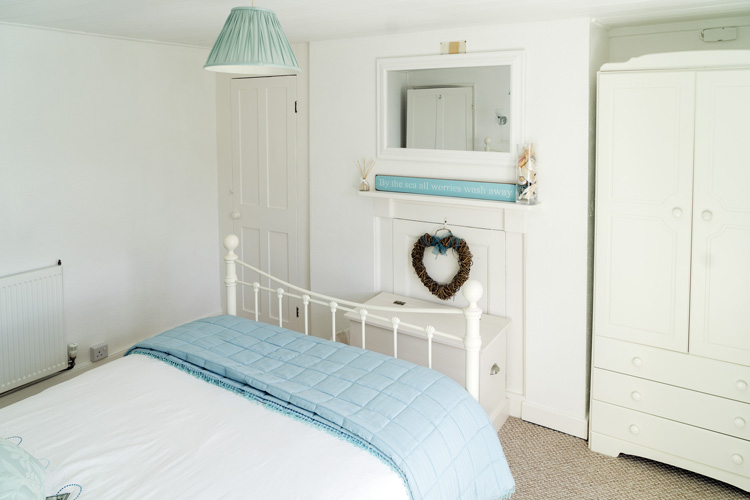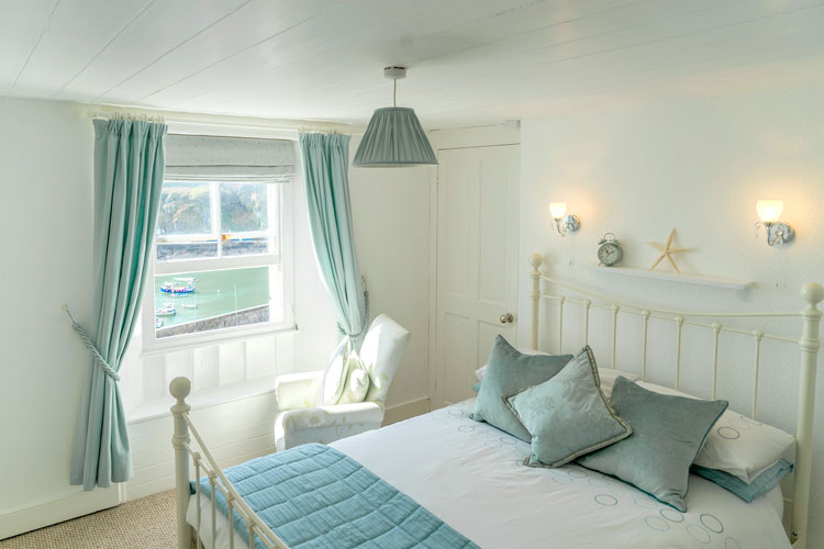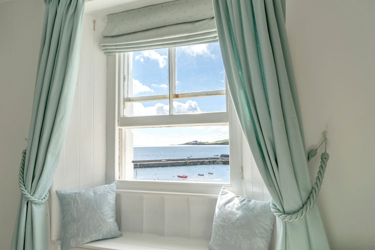 A light and breezy master bedroom with a wonderful view of the harbour and window seating to enjoy the picturesque harbour. There is also an armchair, wardrobe, storage space and a mirror, plus the room also benefits from the convenience of an en-suite toilet.
