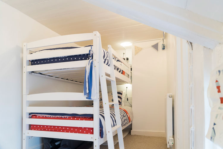 The double bedroom leads through to this bunk bedroom with a fun nautical theme and is ideal for parents with young children.