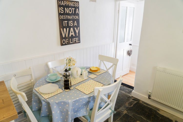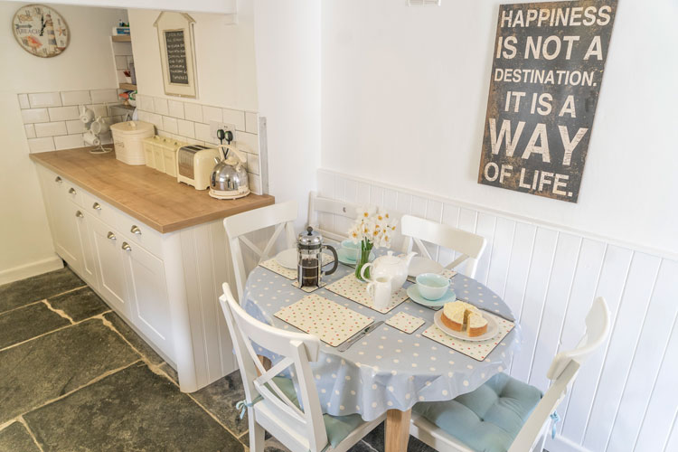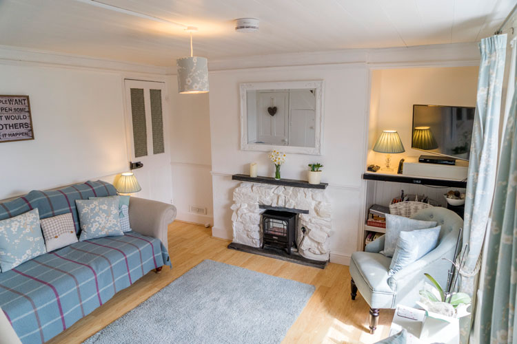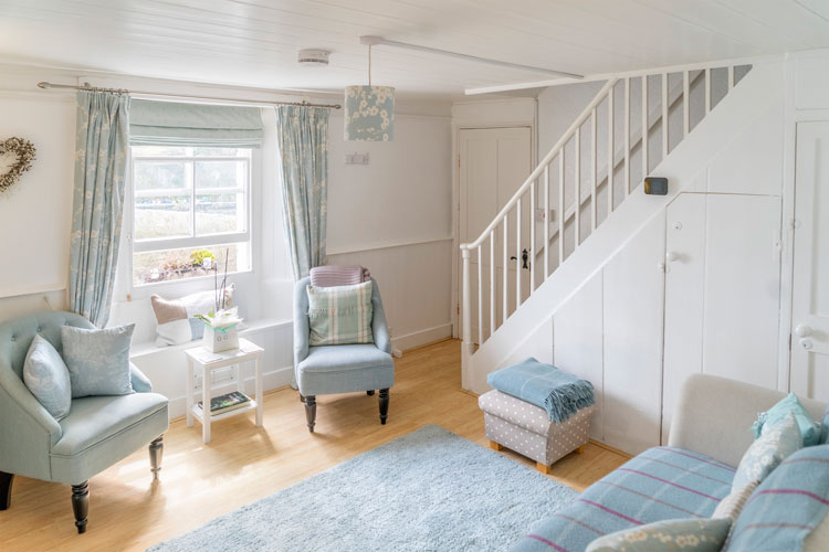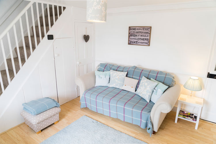 The cottage has a bright and relaxing living room tastefully decorated with comfortable seating and lighting that brings a warm glow to the room. There is also a tv with Freeview channels available, heating and storage space underneath the stairs if required.